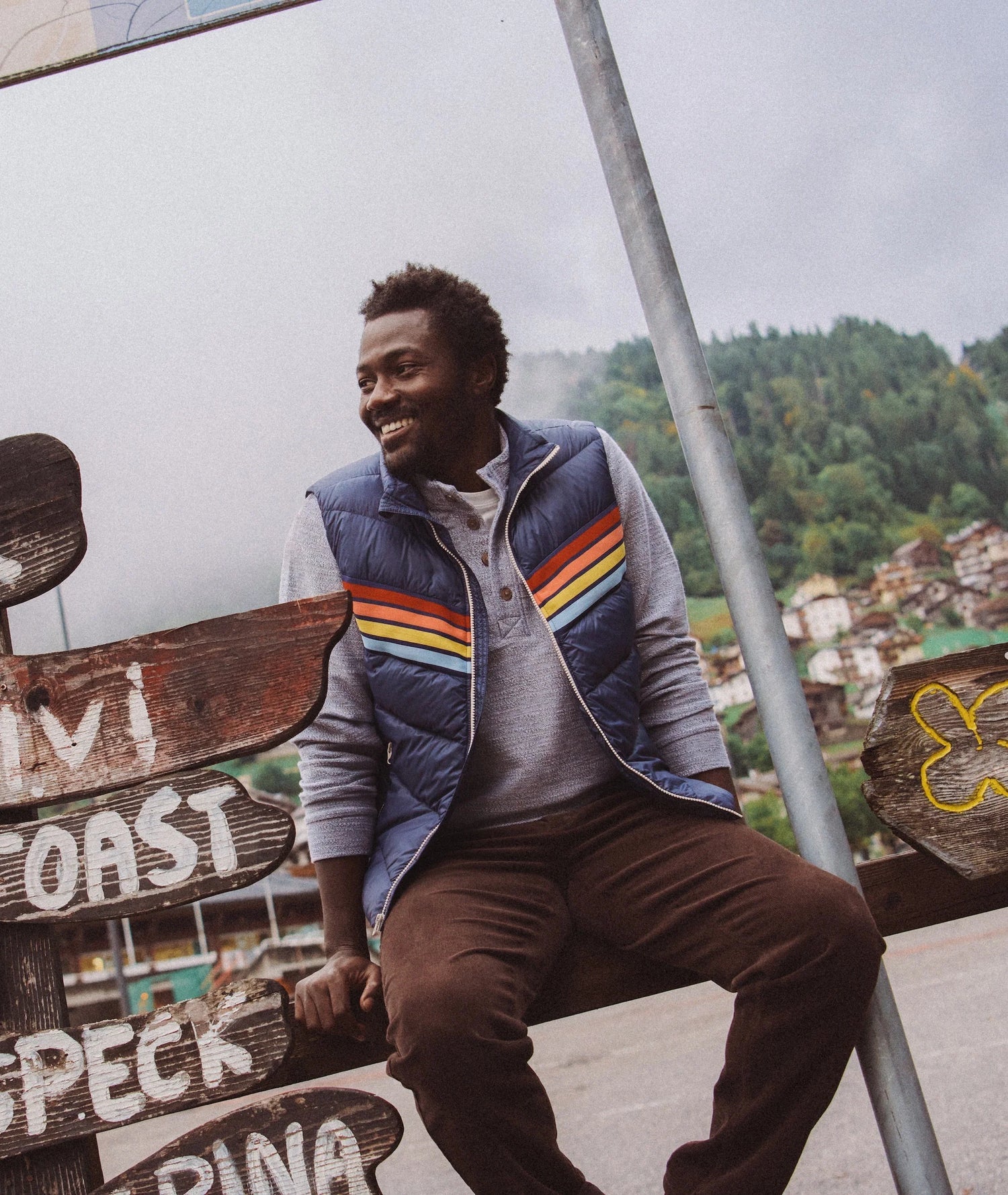 Because Fair Isle deserves more than just sweaters. This puffer vest is made for layering, with bold tones that take center stage. Designed with a relaxed fit that hits at the hip, it features a cinchable hem for versatile styling, plus both interior and exterior pockets for extra functionality. Finished with our "Sending Sun from SF" patch, this piece is all about making a statement while staying cozy.