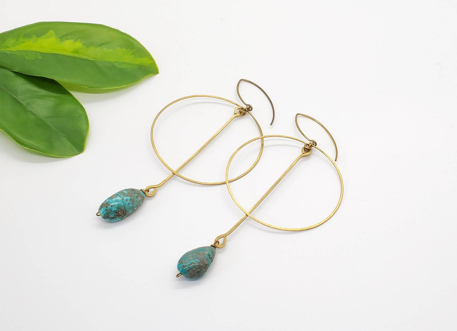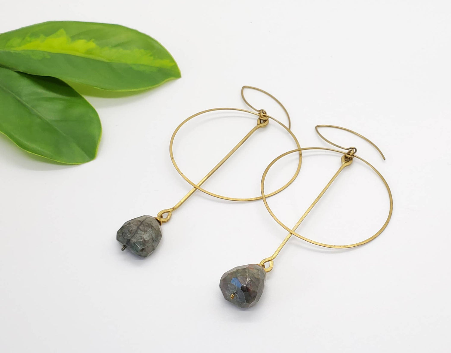 Designed in partnership with and handmade by a husband/wife duo and their team in Thailand. Brass, silver, & sterling silver and natural semiprecious stone earrings.