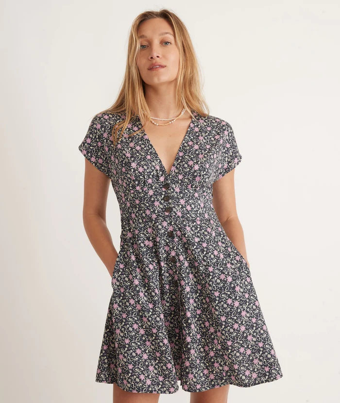 This flutter-sleeve, A-line dress works for everything. Buttons up the front, pockets on the side, and eye closure (if you wanna cover up a little), and is smocked at the back for an extra flattering look.