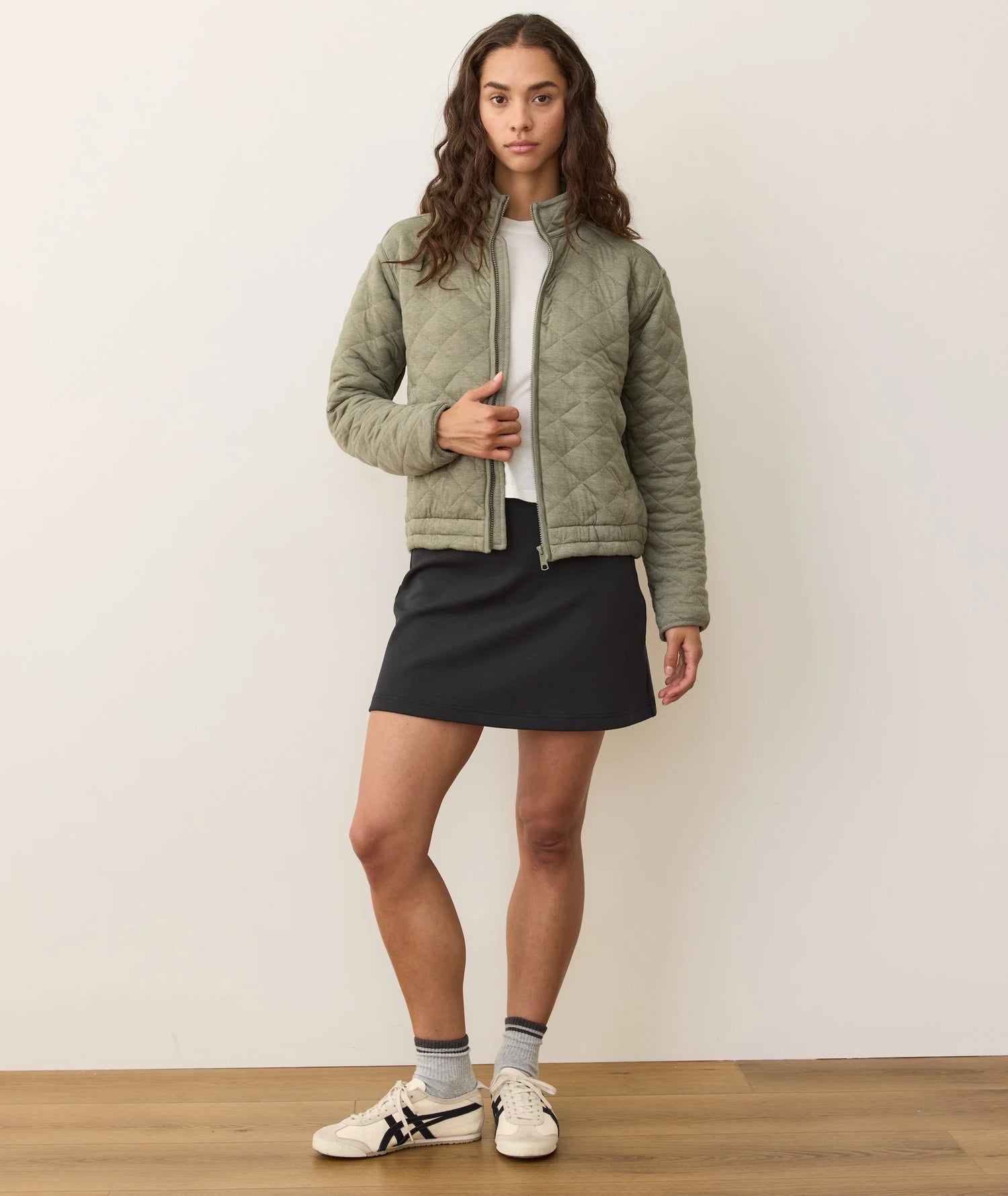 The name says it all. This brand new style is crafted with our signature Corbet Quilted fabric, so it's crazy soft and warm, without being bulky. This full-zip bomber has a high neck, side pockets, and gathers slightly at the waist for a modern, fresh silhouette. Not to mention it comes in two incredibly versatile hues—basically, it's your spring closet's workhorse.