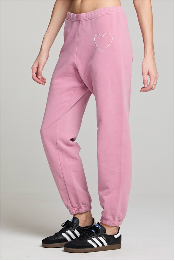 The Elara Pant elevates the classic jogger silhouette with sweet black heart accents down the leg.