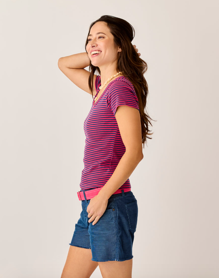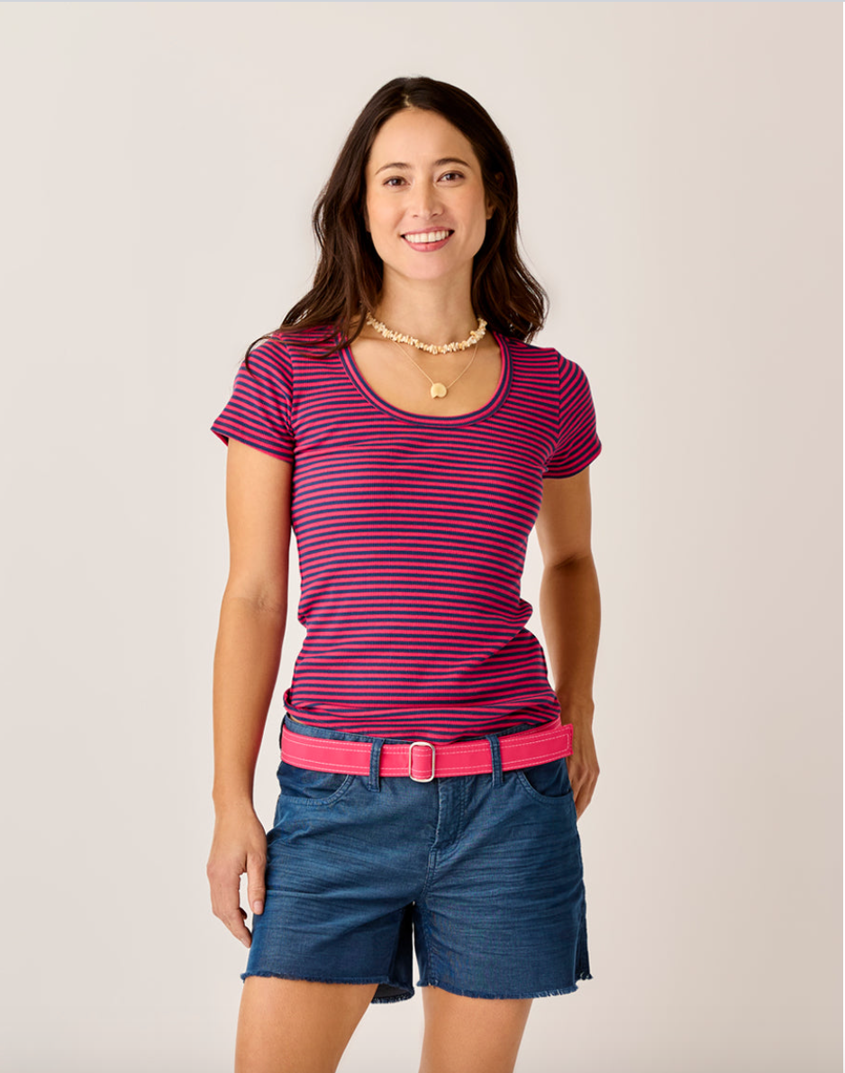 The Ever Tee turns a wardrobe essential into something effortlessly special. With a flattering scoop neckline and fitted silhouette, it offers a naturally beautiful drape and soft stretch that flatters every figure. Crafted from a sustainable blend of organic cotton and recycled polyester, its 2x2 rib texture adds subtle sophistication and touchable quality. A true everyday hero that pairs perfectly with anything in your Carve collection.