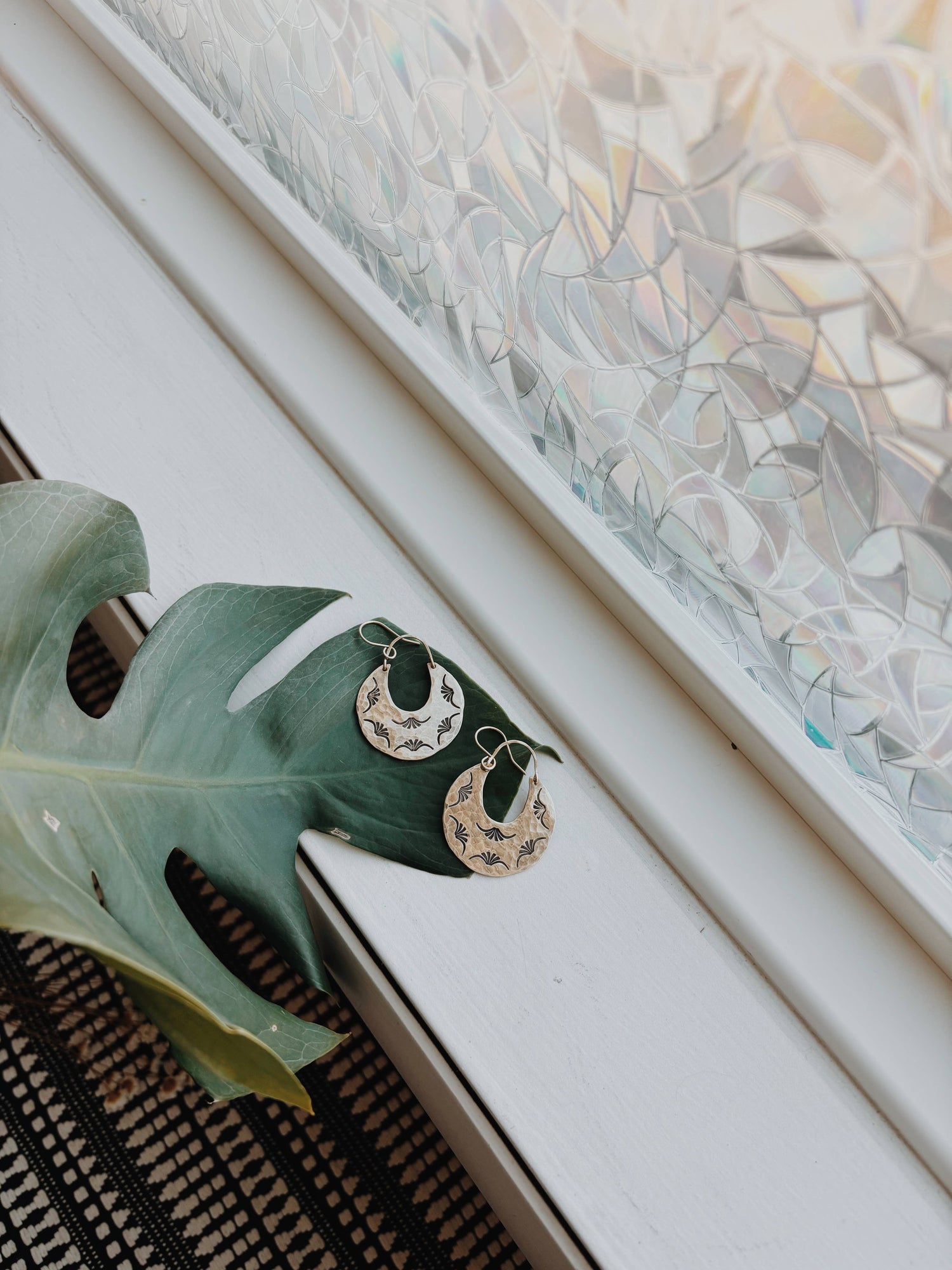 Textured brass or sterling silver plated brass pieces dangle from 14k gold filled or sterling silver ear wire.