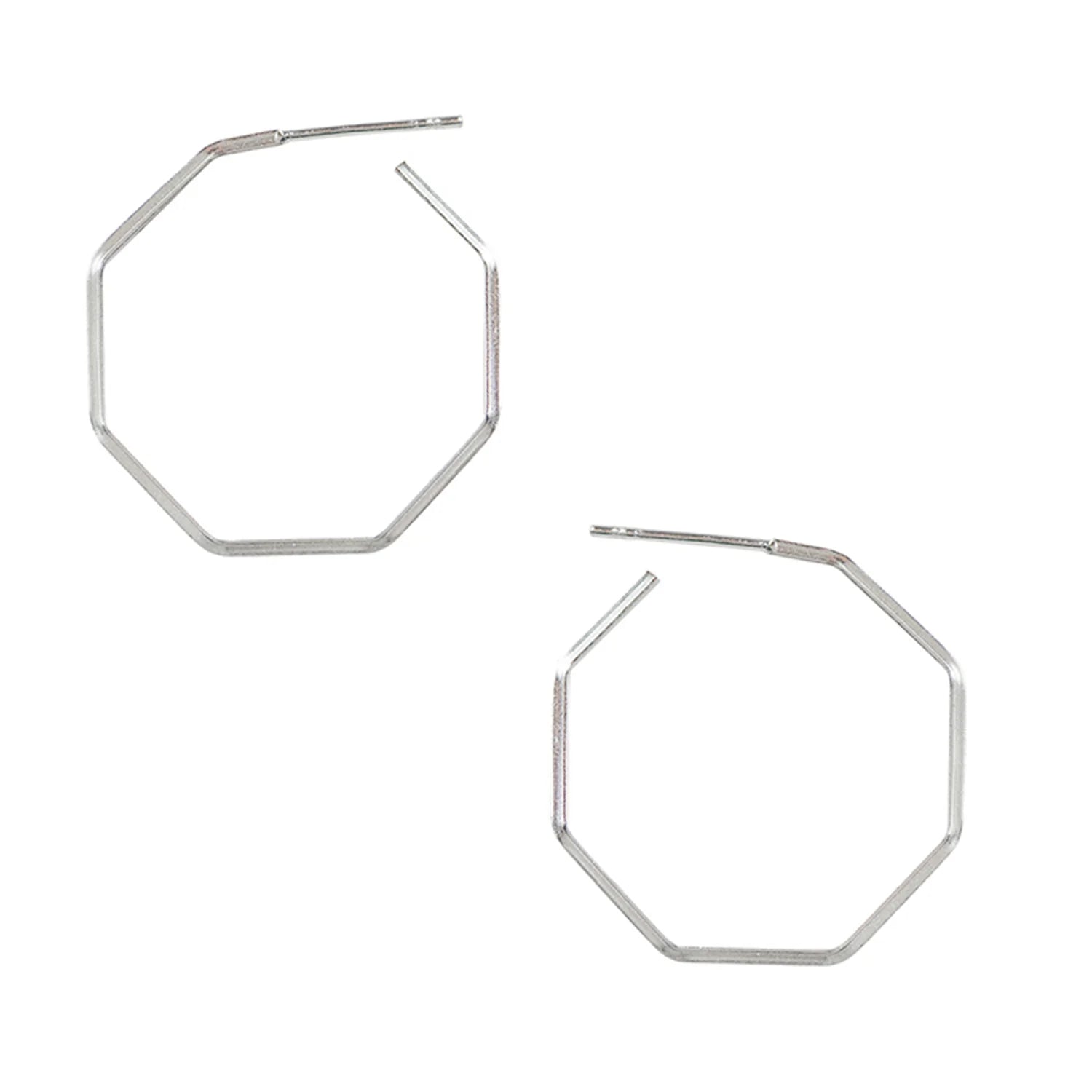These sterling silver open octagon hoops are modern and easy to wear. Sexy like a hoop, secure like a post.
