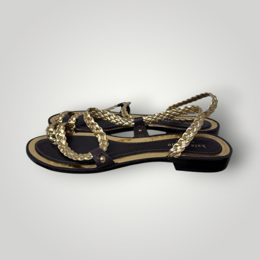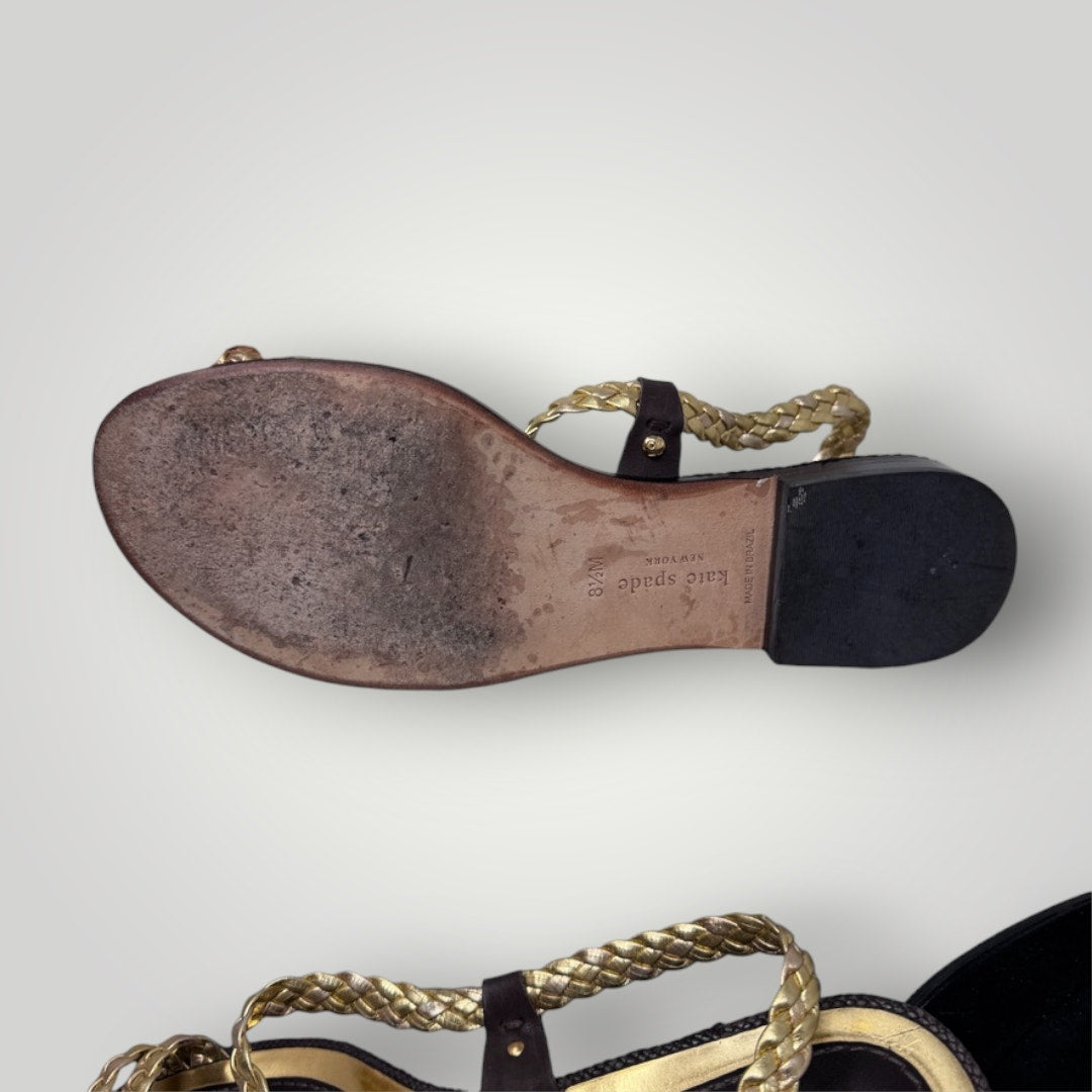 Kate Spade Sandals Gold Braided Leather Women's 8.5 Strappy