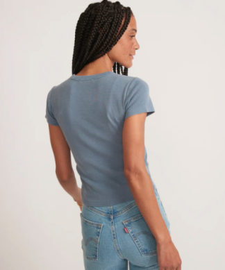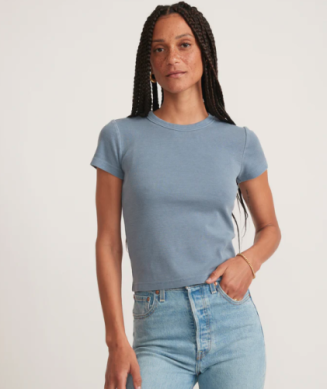 Meet the freshest take on our Lexi Rib fabric. This style has been garment dyed for a naturally sun-faded, broken-in look and feel. The fit? It's a perfect, slightly fitted version of a crew tee. (Think baby tee, but not as tight.) It's absurdly soft, comfortable, and has a great thick texture. Perfection? We'd like to think so. This tee is a slightly fitted version of a crew tee.