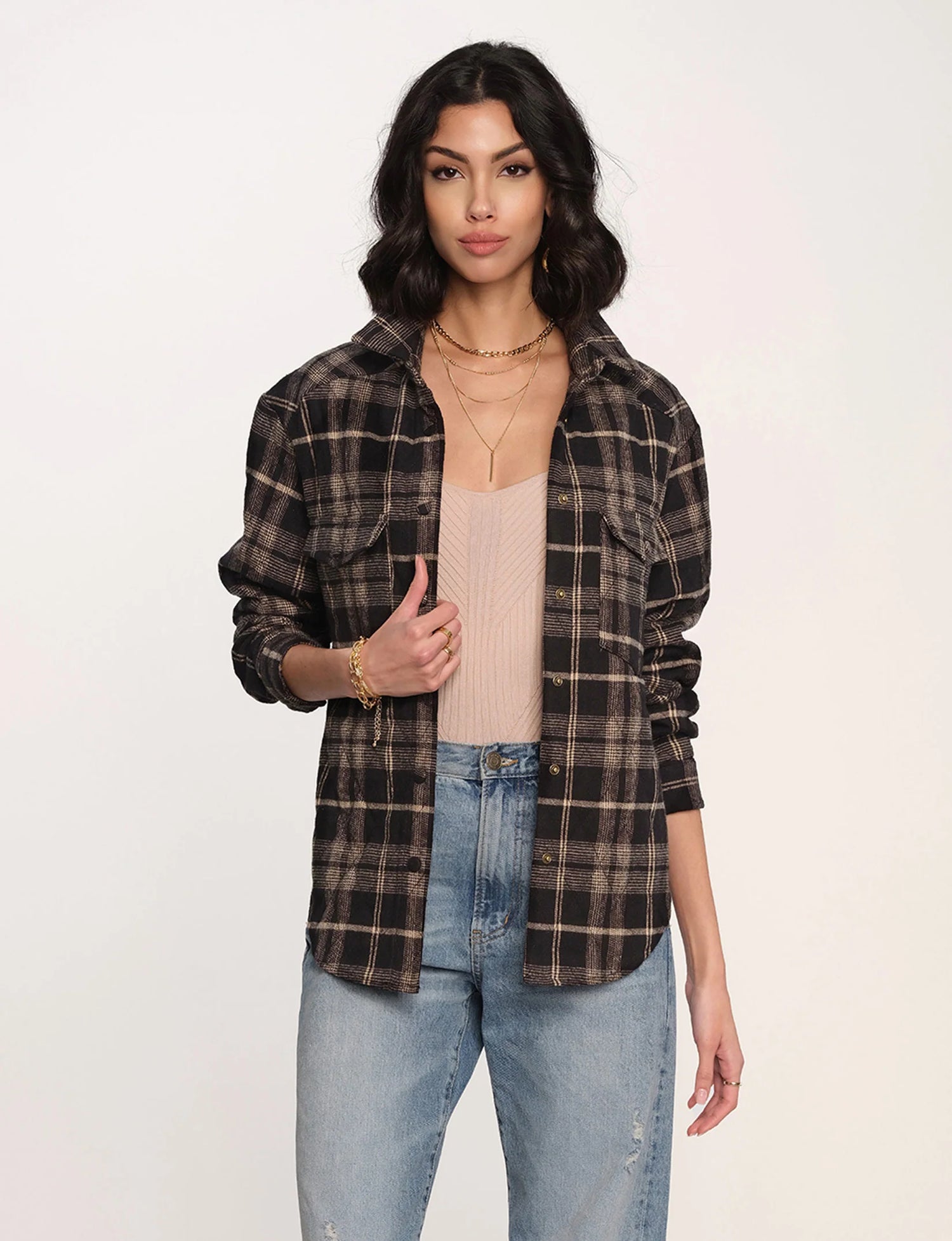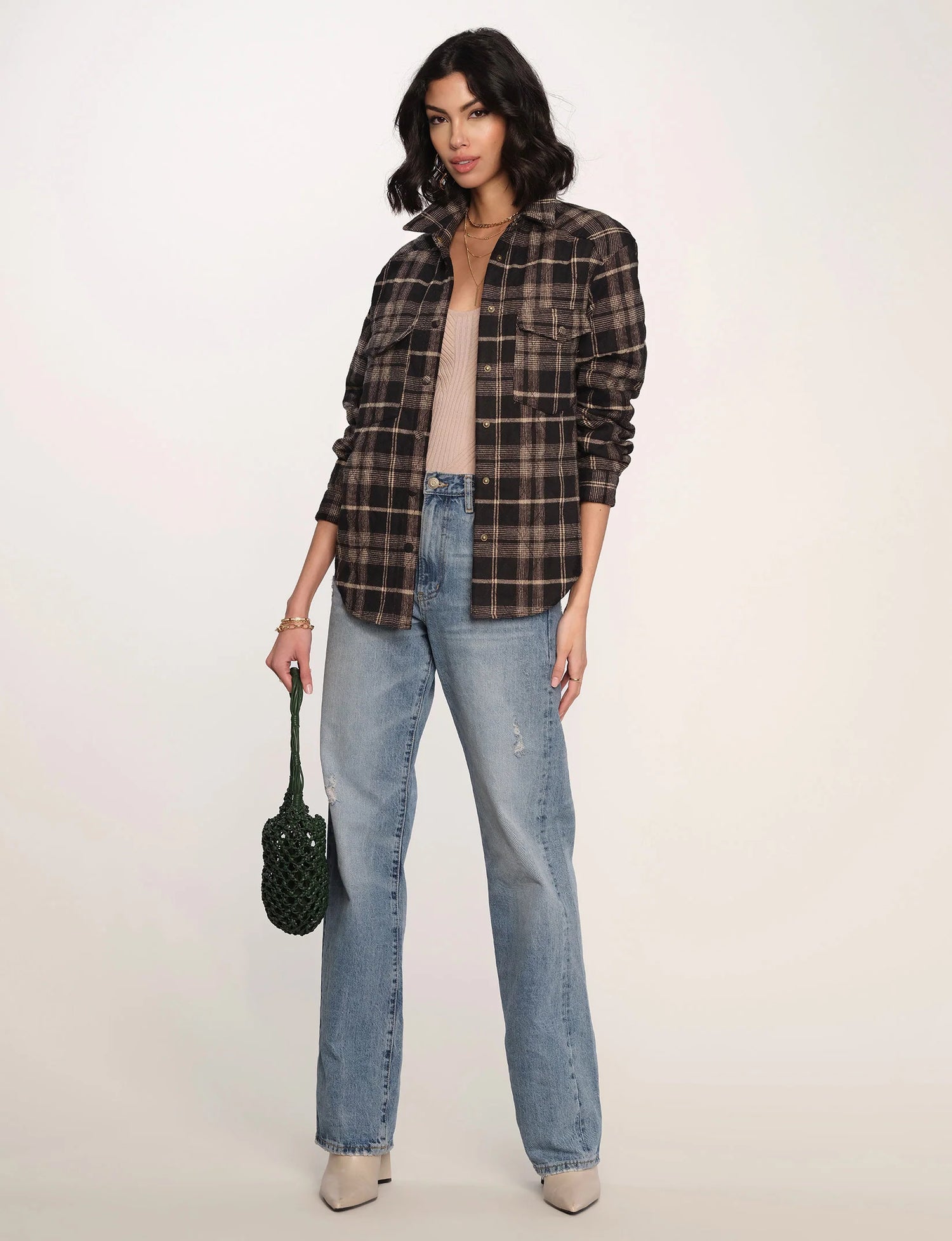 The Mercure Jacket is a relaxed, shacket fit. It's made from a quilted plaid and features snaps down the front. Pair over dresses, skirts, or jeans… the outfits are endless.