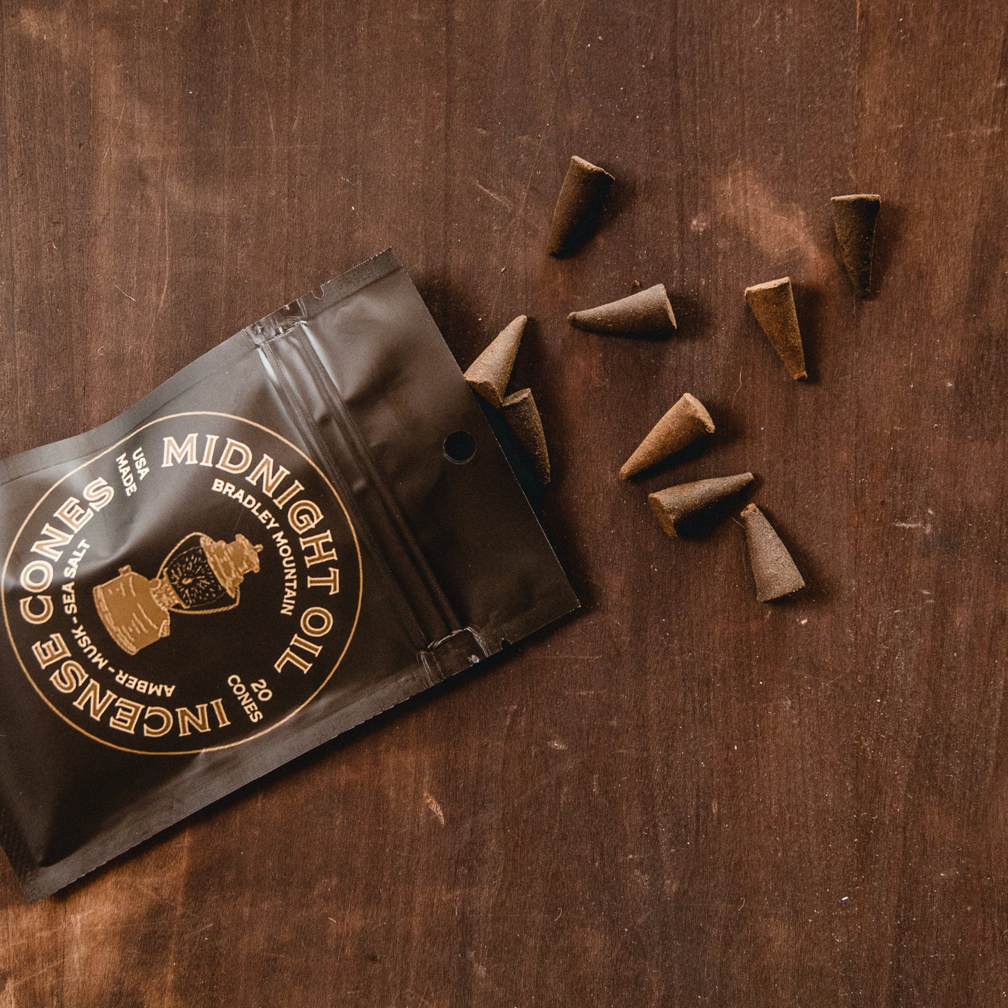 Enjoy our Midnight Oil Incense cones when you're working hard and burning that midnight oil. We know how hard it is to build a business and to work on your passions so we made incense cones to go along with that journey! Burn them while you're working late and know we're here in spirit cheering you on!