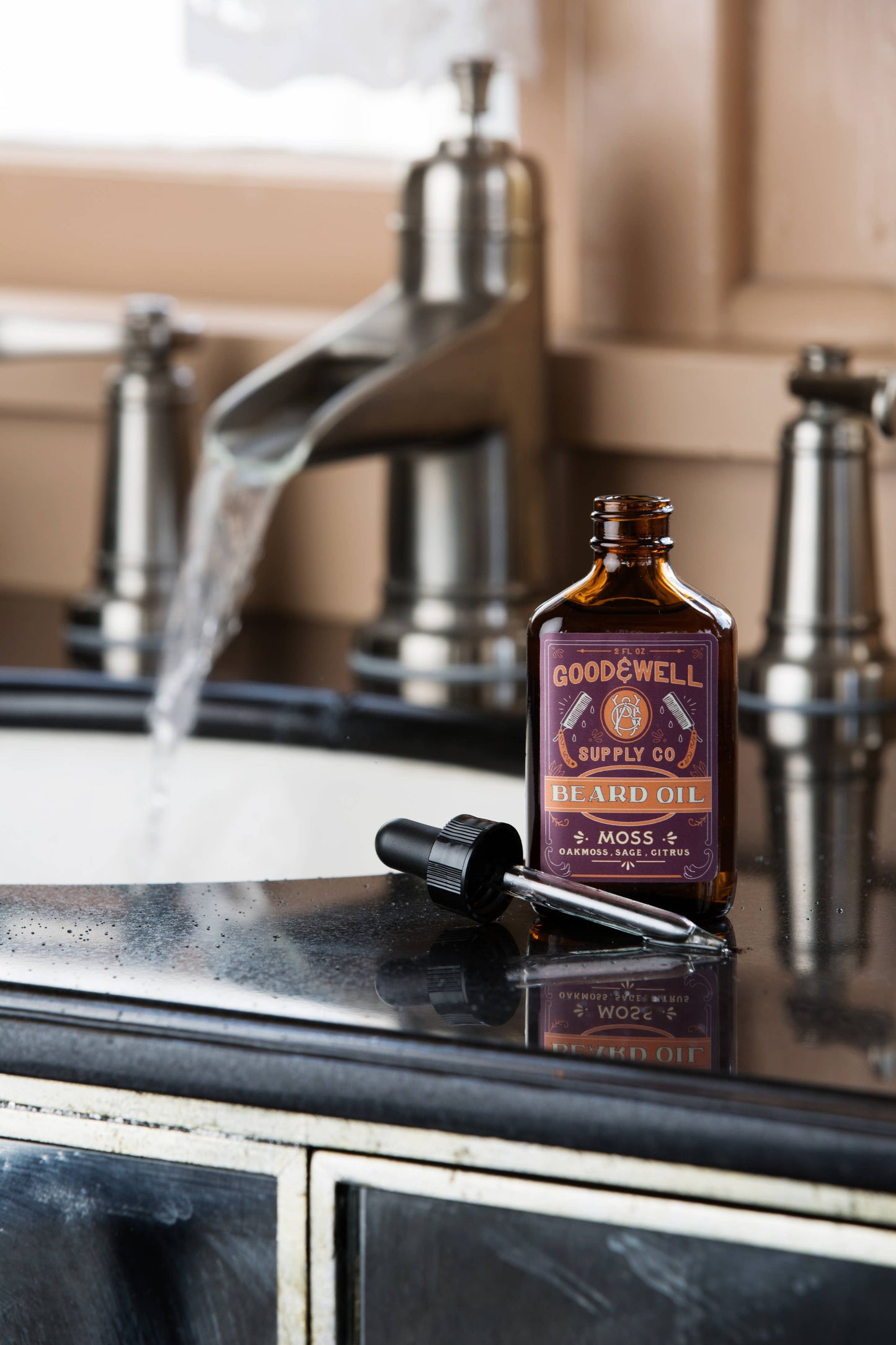 Carefully formulated with superior quality, luxurious botanical oils designed to simulate your skin's natural oils to keep your beard hair and sensitive facial skin healthy, moisturized without being excessively greasy. 2 oz. Packaged in a recyclable glass apothecary bottle with dropper cap.