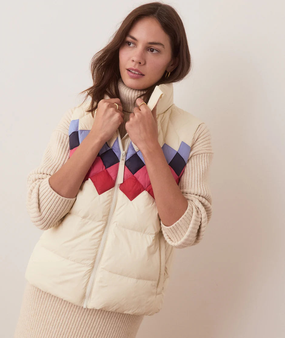 Because Fair Isle deserves more than just sweaters. This puffer vest is made for layering, with bold tones that take center stage. Designed with a relaxed fit that hits at the hip, it features a cinchable hem for versatile styling, plus both interior and exterior pockets for extra functionality. Finished with our "Sending Sun from SF" patch, this piece is all about making a statement while staying cozy.