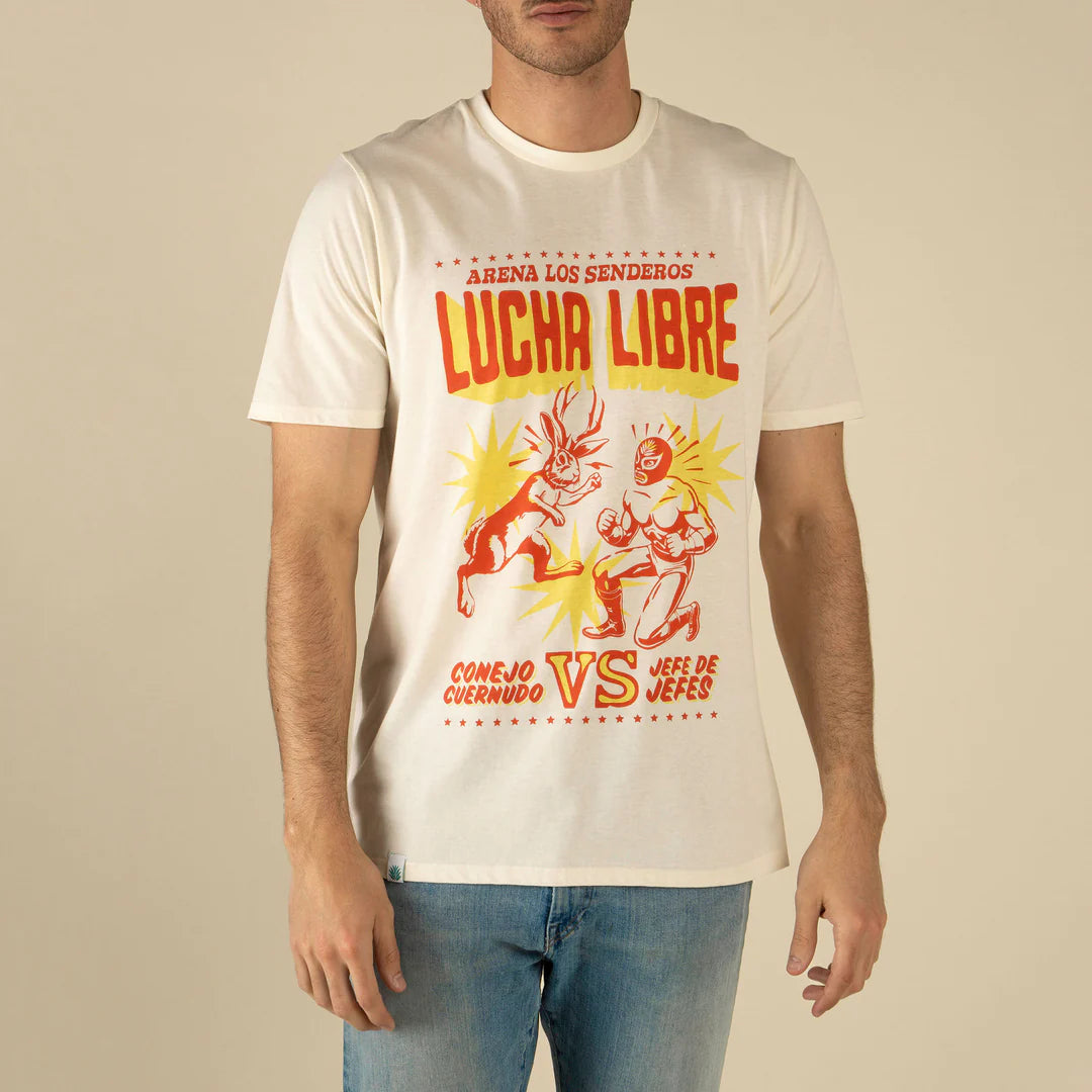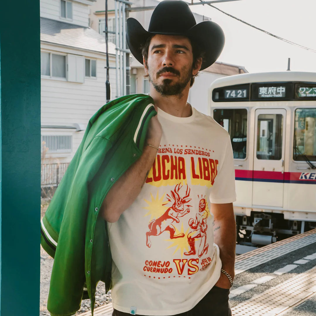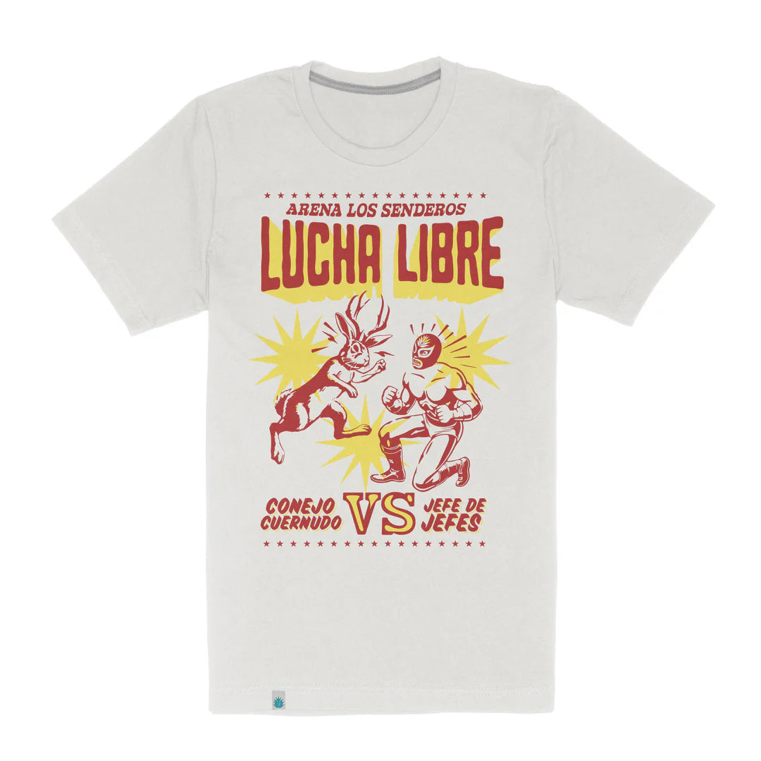 The main event, tonight at Arena Los Senderos. Jefe defends his title against the underdog: the Conejo Kid. Seniors get in free. Kids are half priced. Buckets of beer are ten pesos till we sell out.