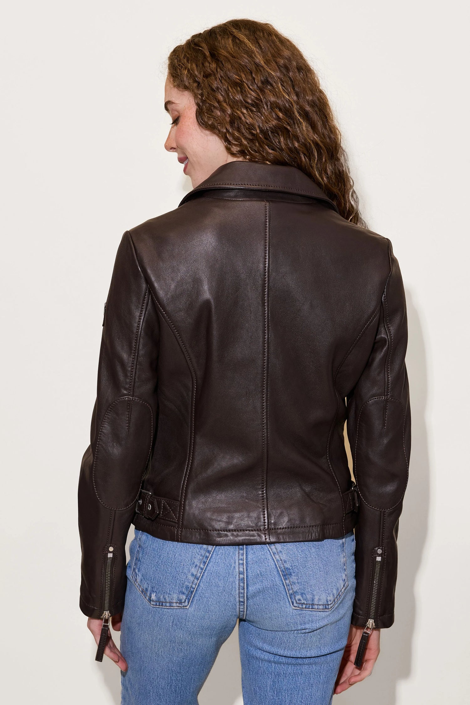 Pasja blends classic moto styling with a sleek, urban edge. Made from soft lambskin leather, it’s a modern update to an essential silhouette.