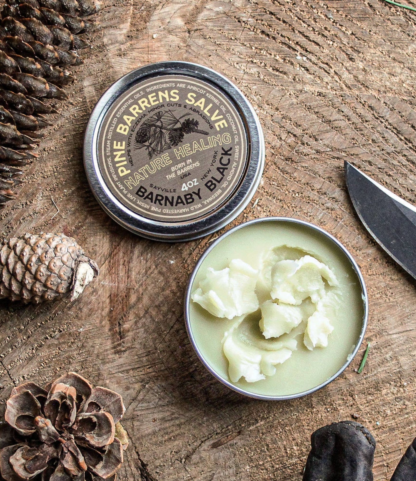 Pine Barrens Salve is formulated to help moisturize & protect, dry & weathered skin. Helps with minor skin ailments, eczema, minor cuts & abrasions. We live & breath the Pine Barrens nearly everyday. We wanted to capture this magnificent wilderness in a bottle. As with all of our Pine Barrens products we harvested the native plants & trees that grow in the Long Island Pine Barrens throughout the seasons to capture teh essence of this place pitch (pine) perfectly.