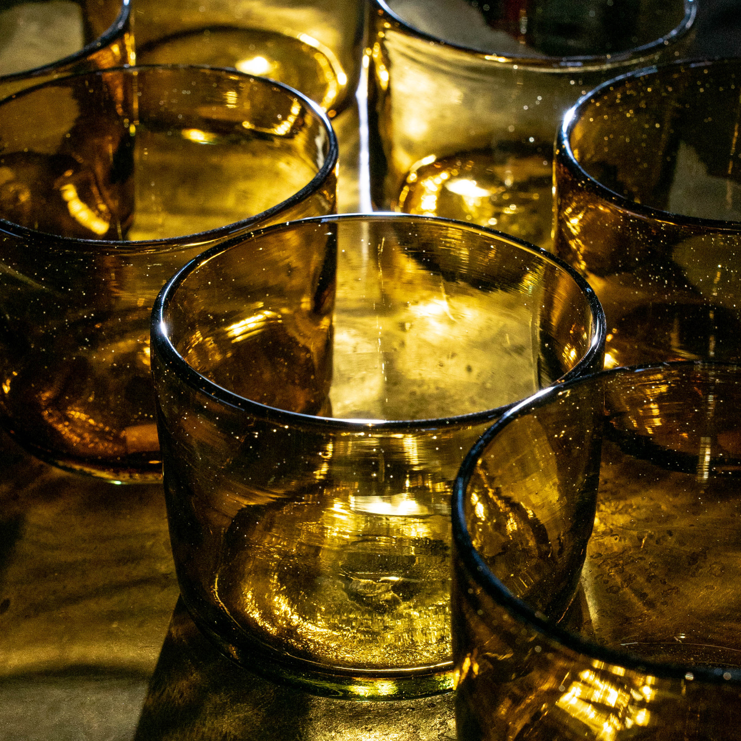 Handcrafted in Mexico using 100% post-consumer recycled amber glass