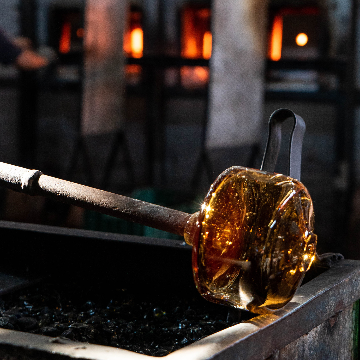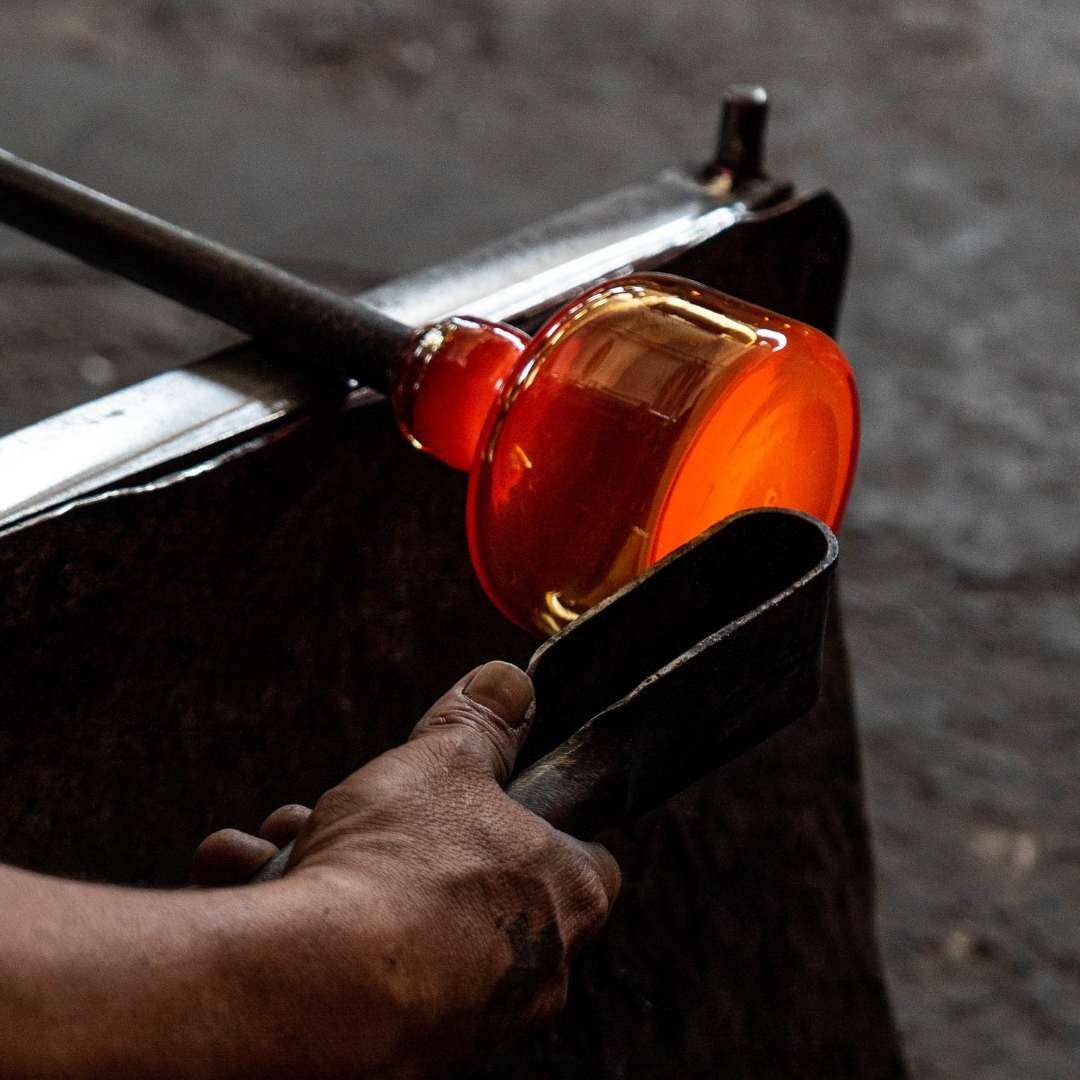 Unique bubbles and curves in the glass highlight the handmade craftsmanship