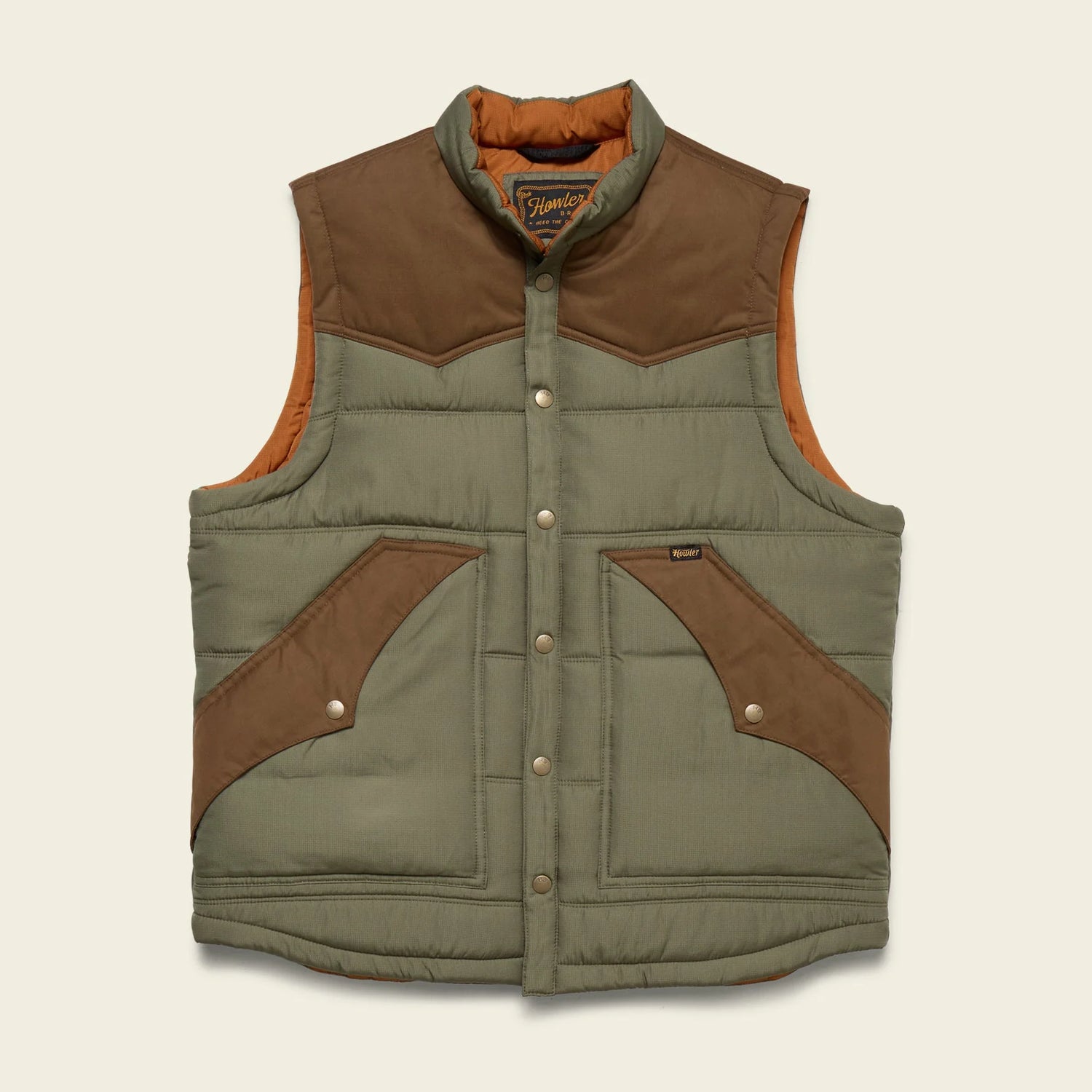 The Rounder Vest ropes the cold on every range with its distinct western styling, core warming Primaloft® insulation and water resistant polyester micro rip-stop outer shell. The Rounder is still the one to grab when you want to straddle the line between cool western stylies and puffy warmth.