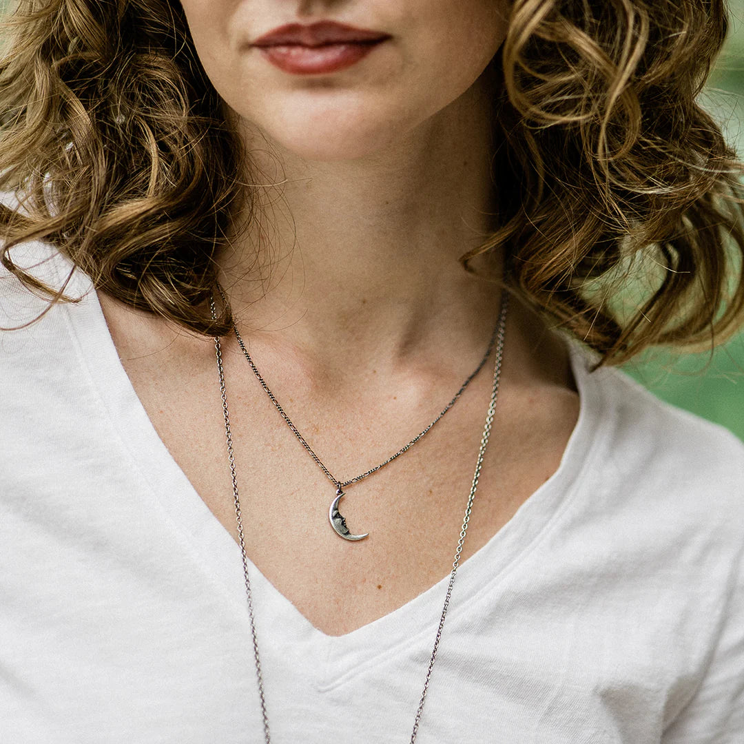 - Metal: Silver or Gold plate over brass on moon, sterling silver or antique chain