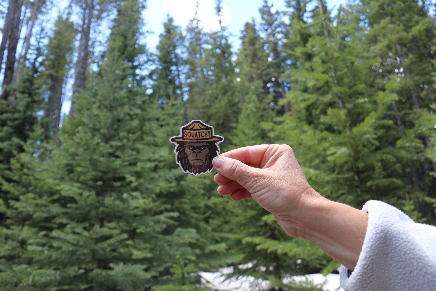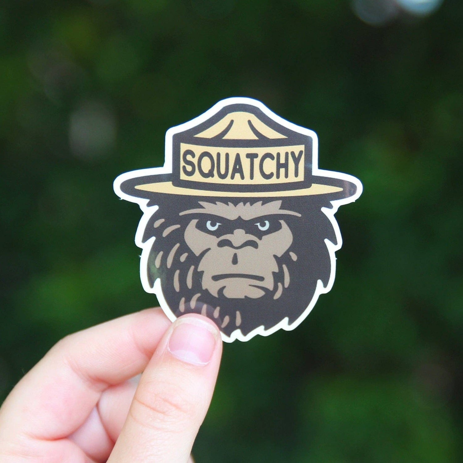 2.6" X 2.5" Glossy Coated Vinyl Sticker Decal Scratch and Weatherproof Are you a Sasquatch, Yeti or Bigfoot believer, now you can show Squatchy off on your water bottle, laptop or car window and share it with the world. Please Note: Since every computer screen is different the colors here may vary from the actual sticker.