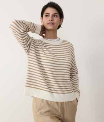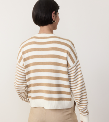 Meet your new go-to knit. Made from 100% cotton, this crewneck is soft, breathable, and perfectly slouchy for that effortlessly cool vibe. The classic stripes keep it timeless, while the easy fit makes it your go-to for layering or wearing solo. Pair it with jeans, skirts, or even over a dress—this one’s a keeper.