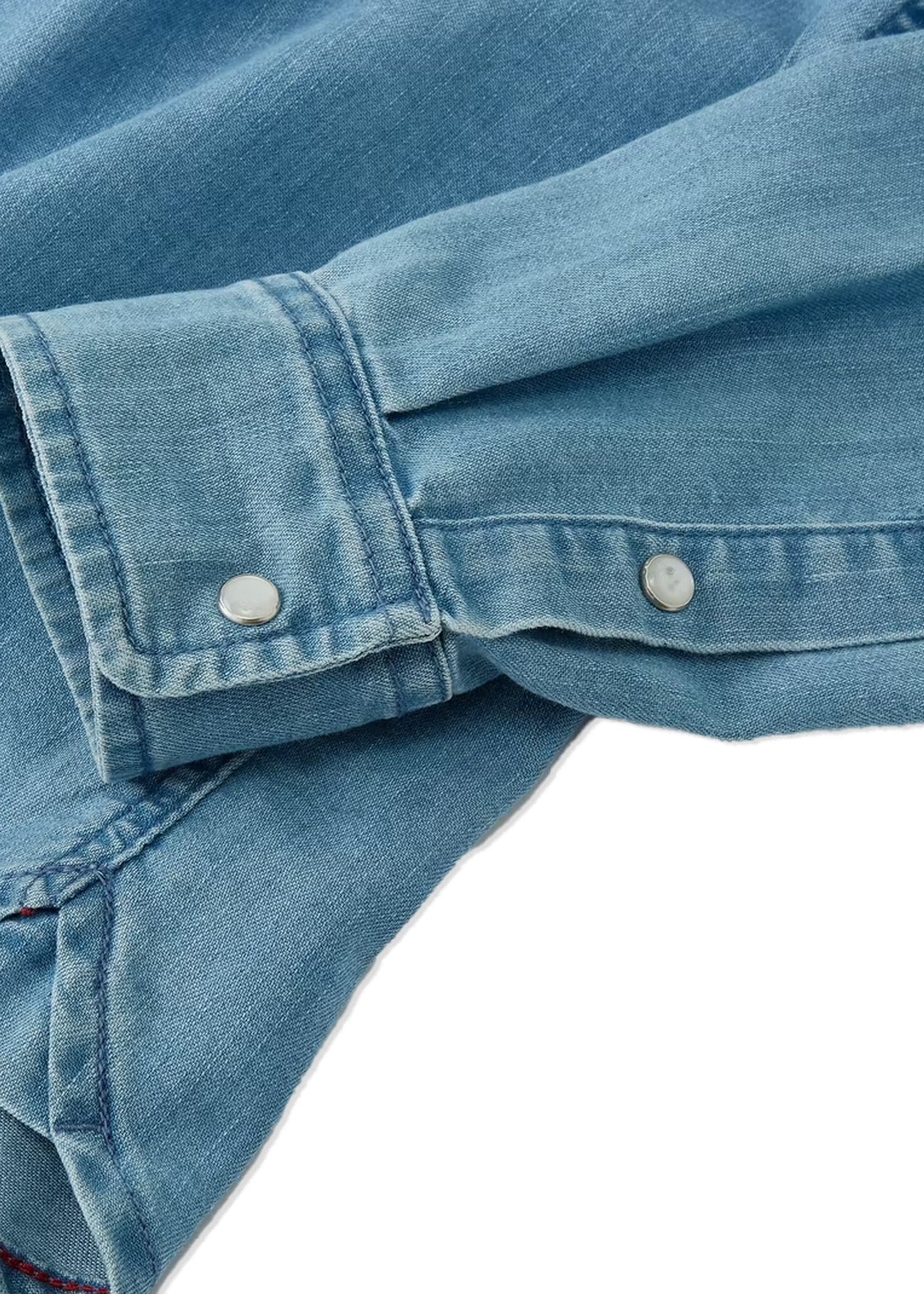 A staple of life in the west and our take on the modern western snap shirt. Featuring a Western shoulder yoke with custom southwest embroidery. We finished this shirt with our heaviest wash to make it feel like it's been cruising around the west for years. This one pairs well with a couple of your favorite cervezas.