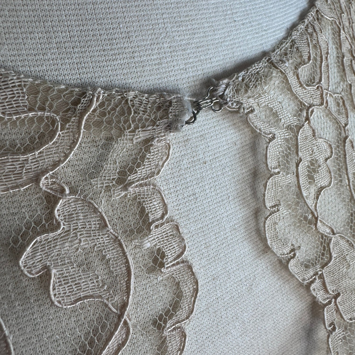 Vintage 1930s Ivory Lace Coat Fingertip Length Sleeveless Open Front Romantic