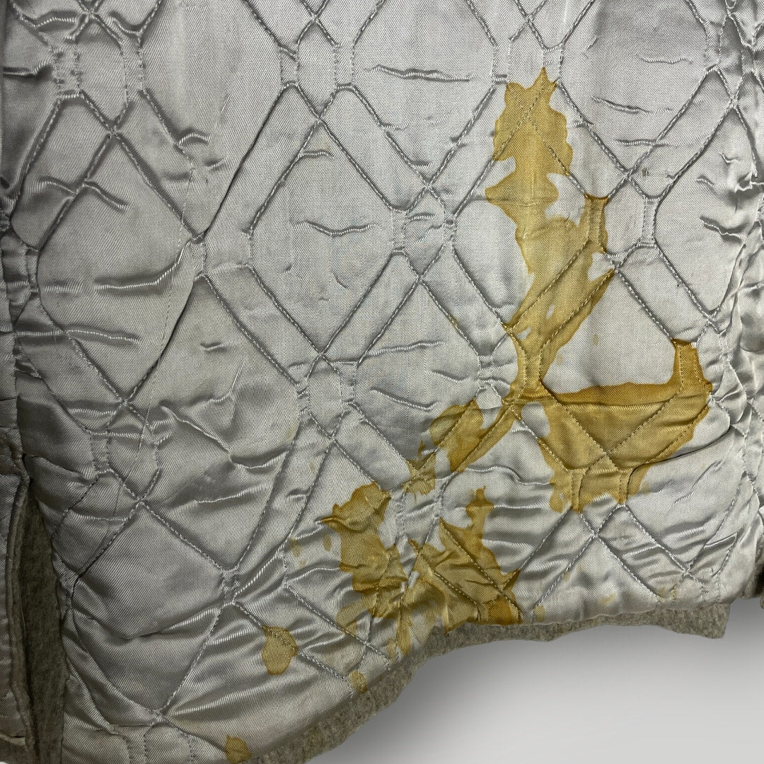 Tag size 40. See measurements. This garment is in excellent vintage condition, free from flaws such as rips, tears, and odors. There will be light wear consistent with the age of the garment. This garment has a stain on the lining of the garment, see photos.