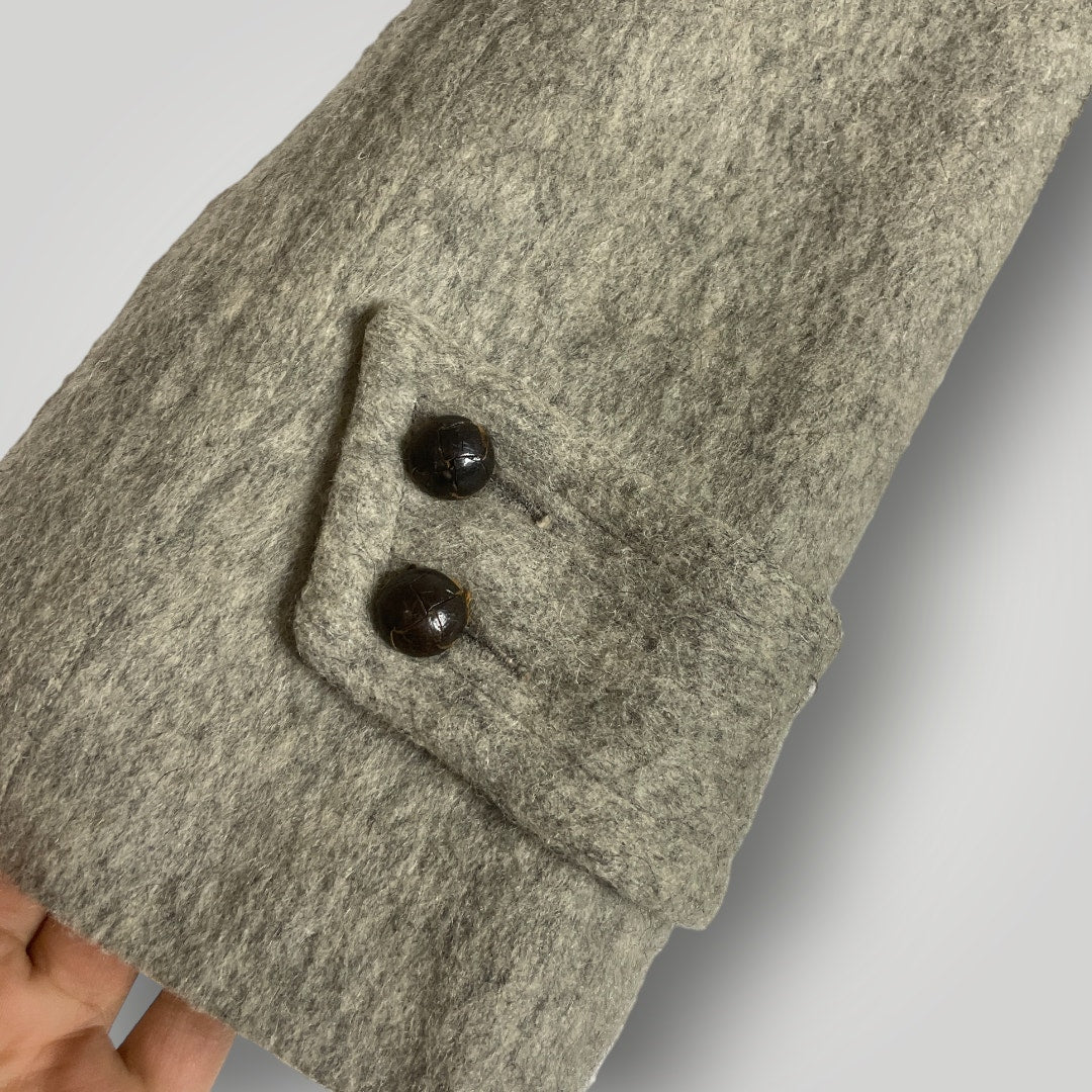 Vintage 1940s King-O-Wear Wool Cashmere Coat Long Gray Leather Buttons Large