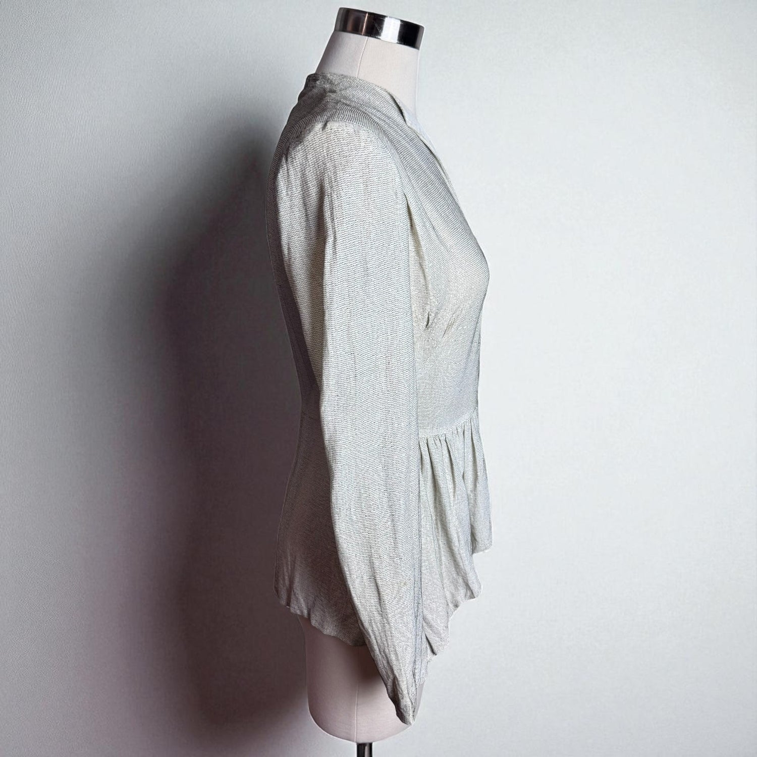 Vintage 1940s Lurex Metallic Button Front Top Blouse Peplum Hem White Gold Threads