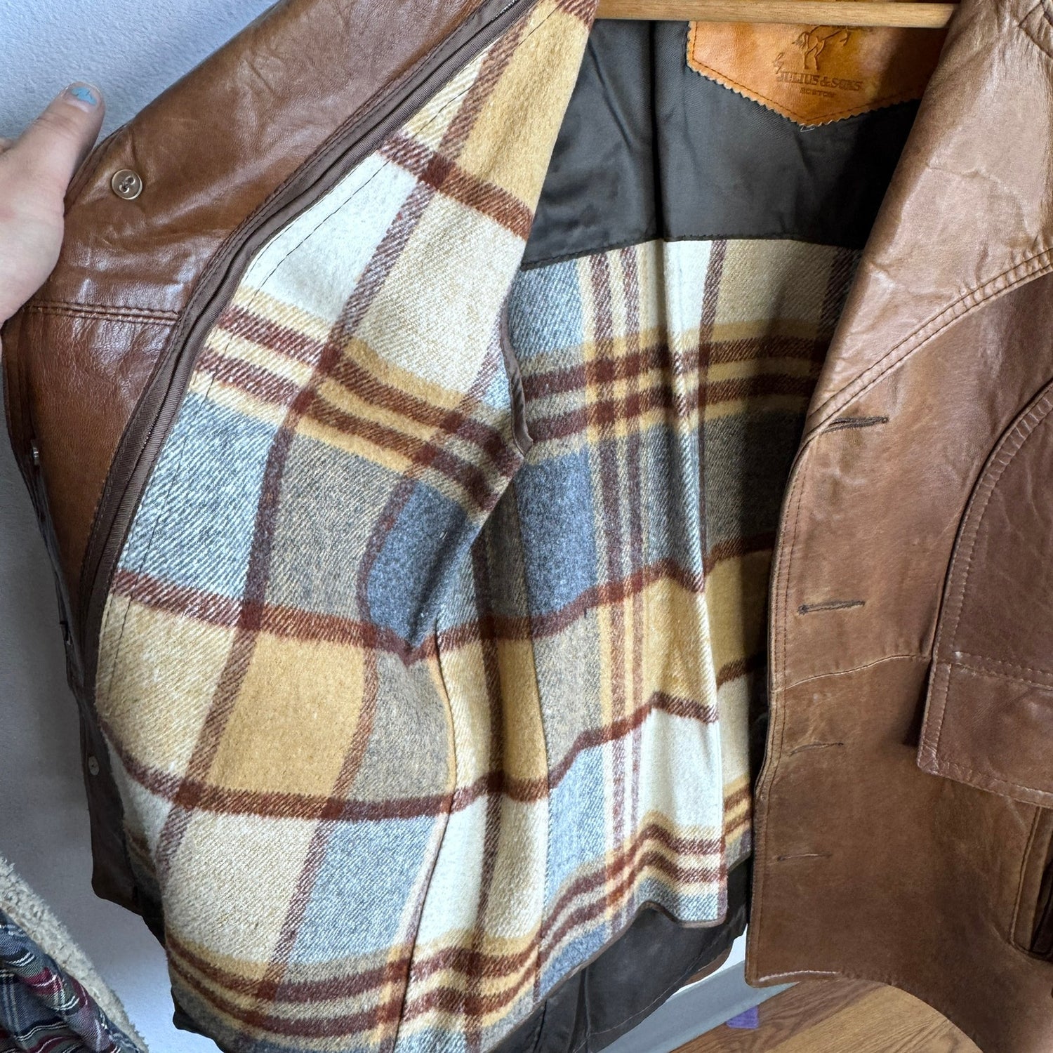 Vintage 1970s Leather Coat 42 Large Brown Gary Gordon Removable Lining Men's