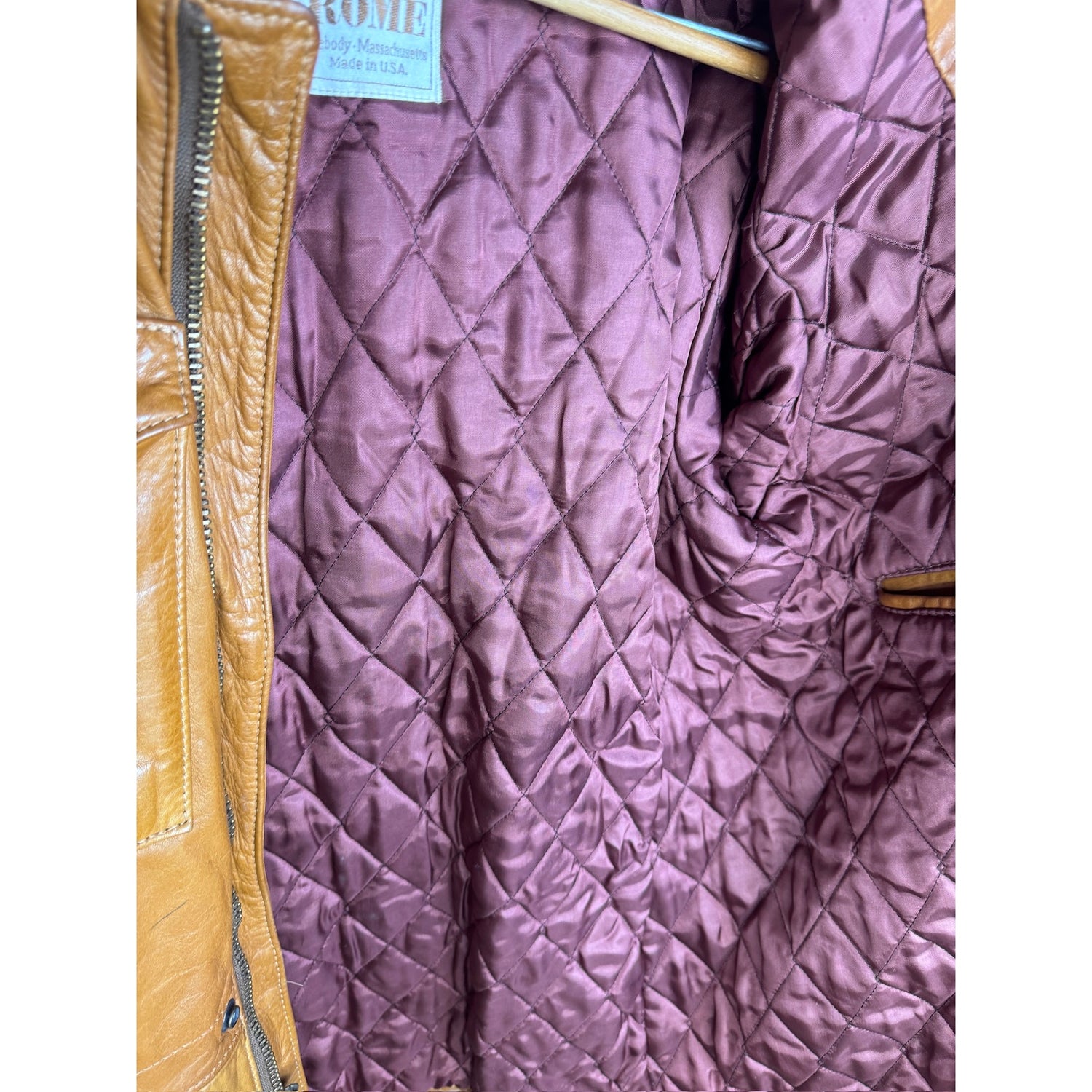 Vintage 1970s Rome Leather Jacket Utility Brown Chore Style Men's Medium