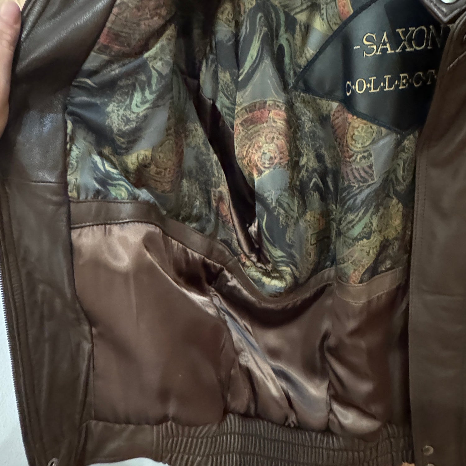 Vintage 1990s Leather Coat Brown Saxony Bomber Men's L Excellent