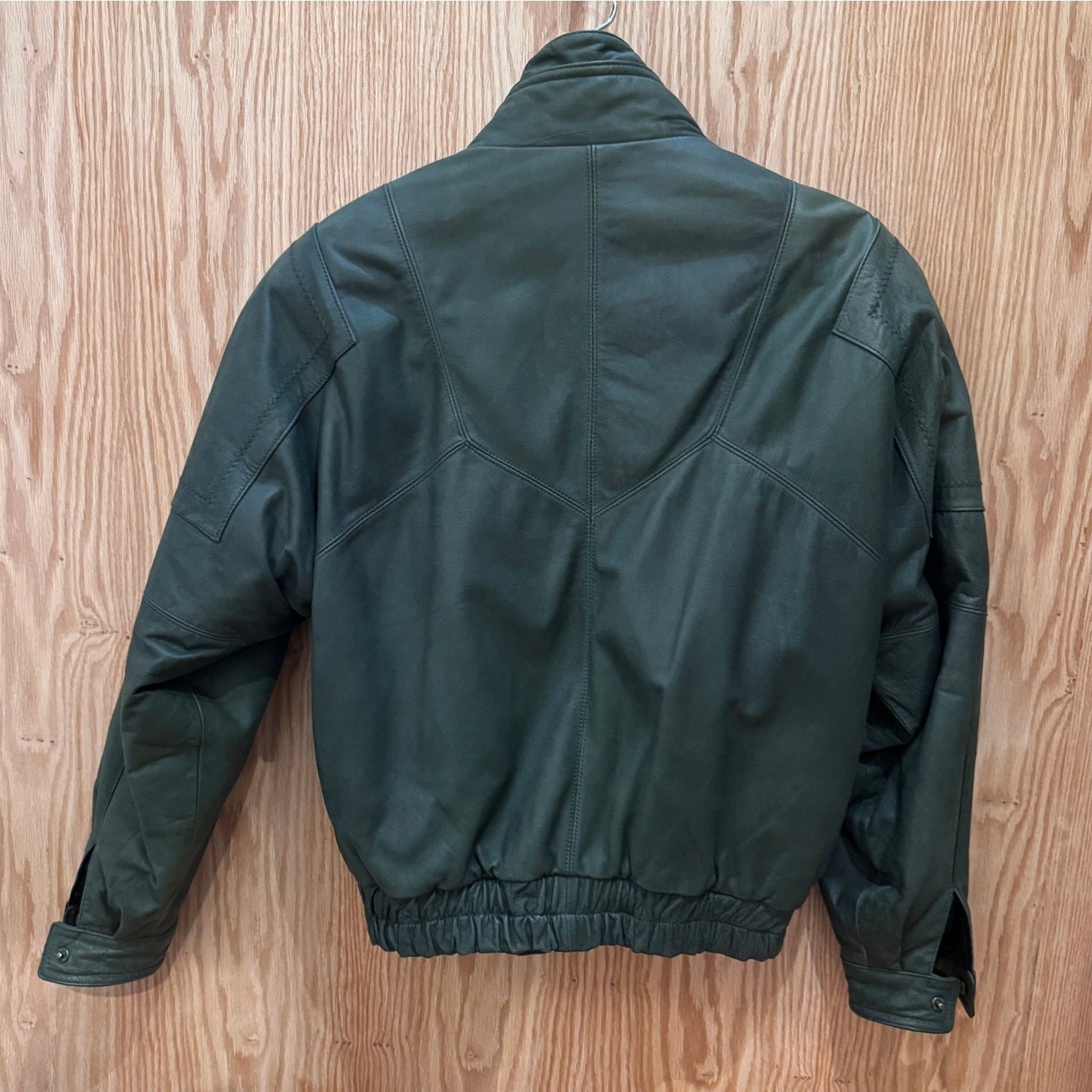 Vintage 1990s Saxony Leather Jacket Bomber Green Rare Men's Large Excellent