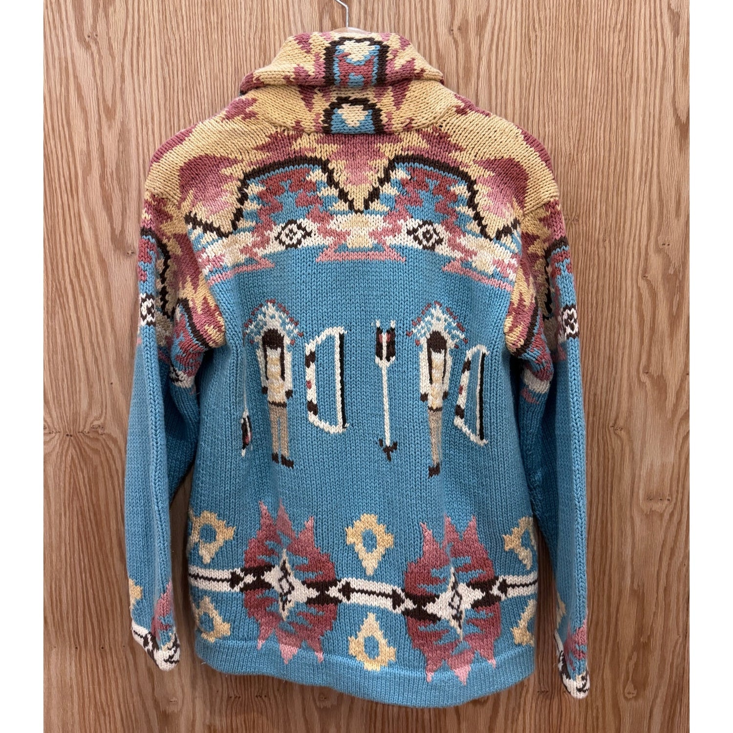 Vintage 1990s RALPH LAUREN COUNTRY Turquoise Native American Southwestern Concho Cardigan Sweater