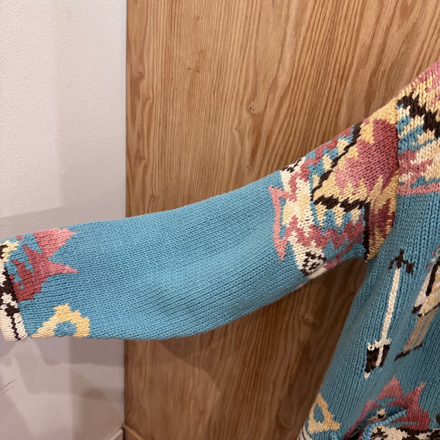 Vintage 90s Ralph Lauren Country Turquoise Southwestern Concho Cardigan Sweater