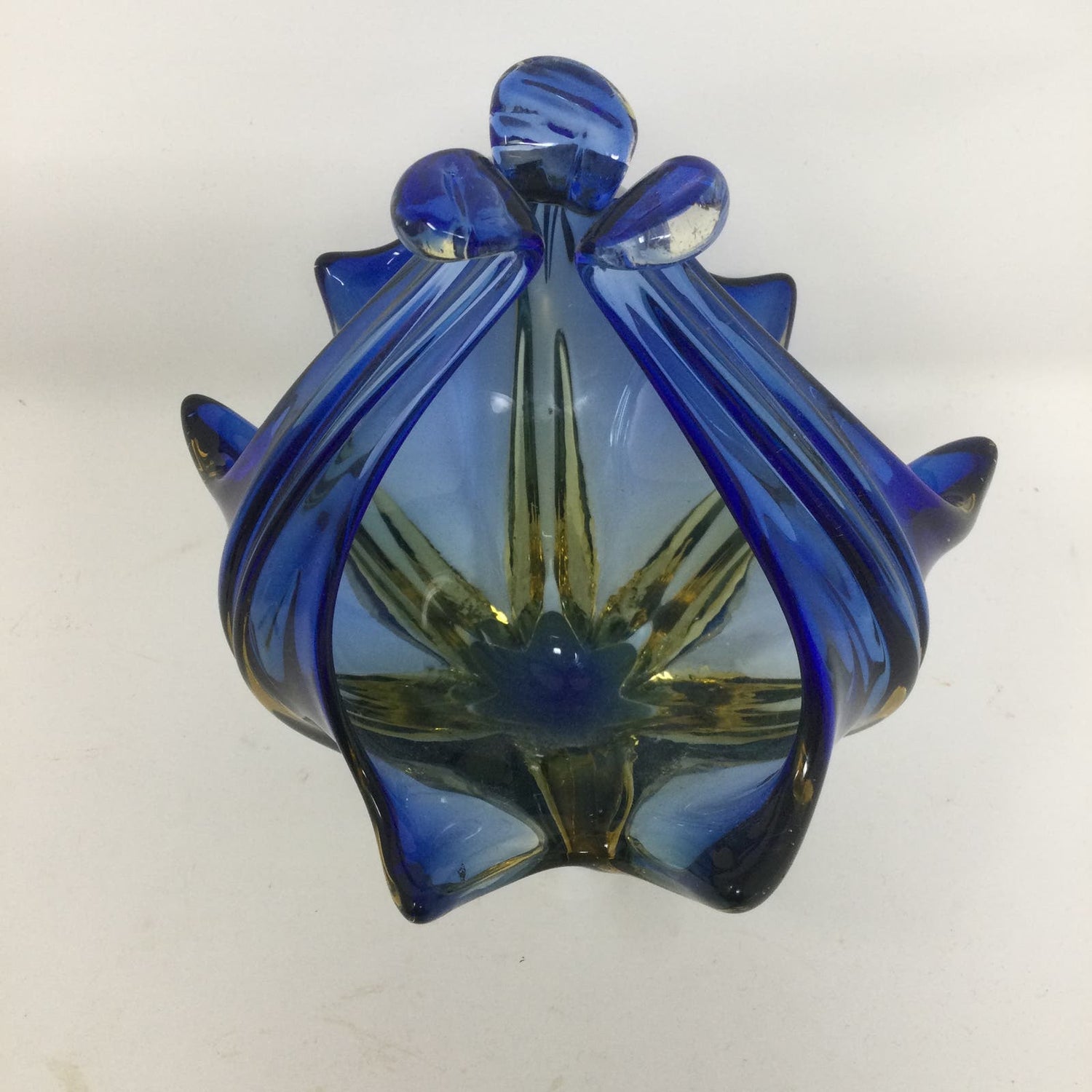 Vintage Murano Art Glass Basket Handmade Italy 1960s Mid Century