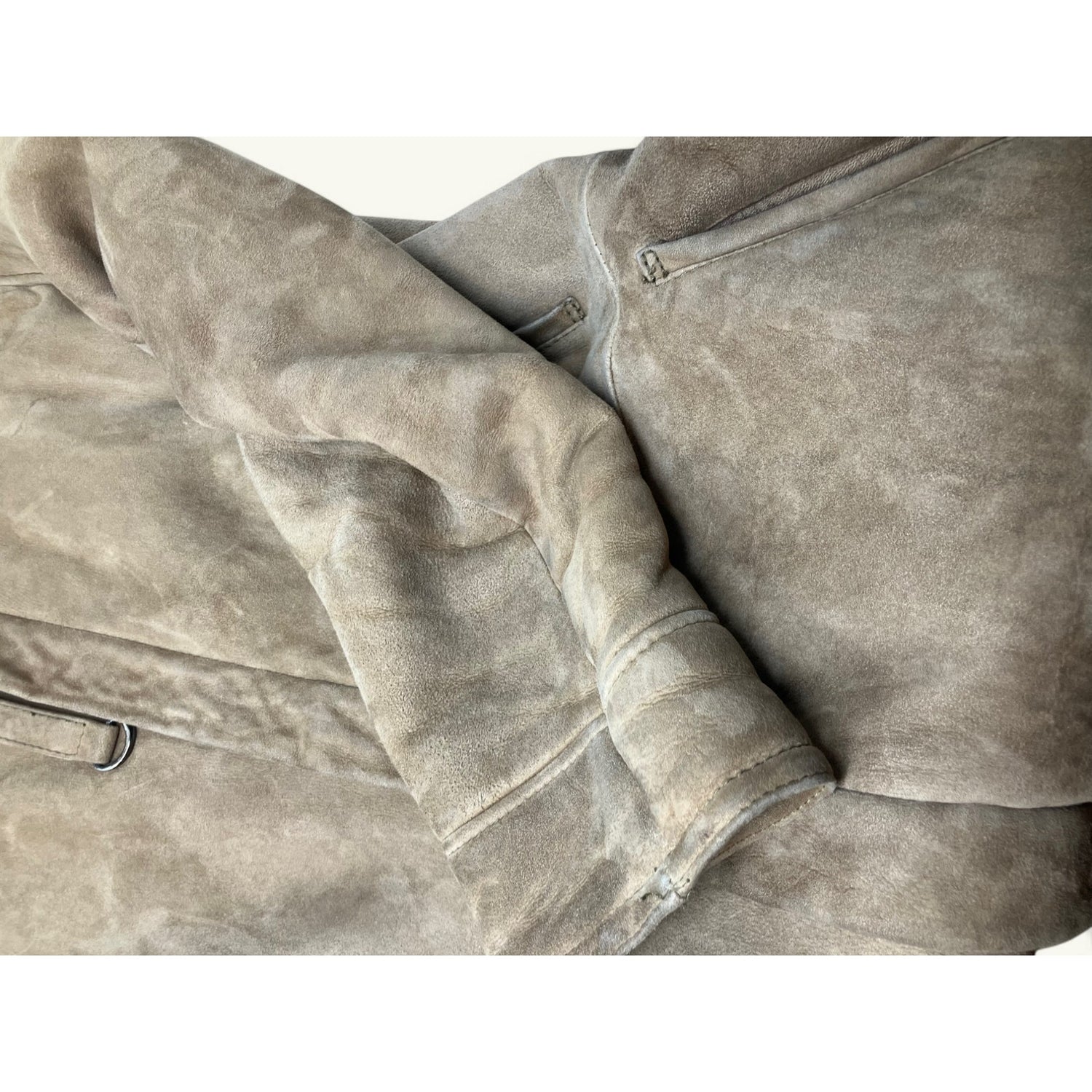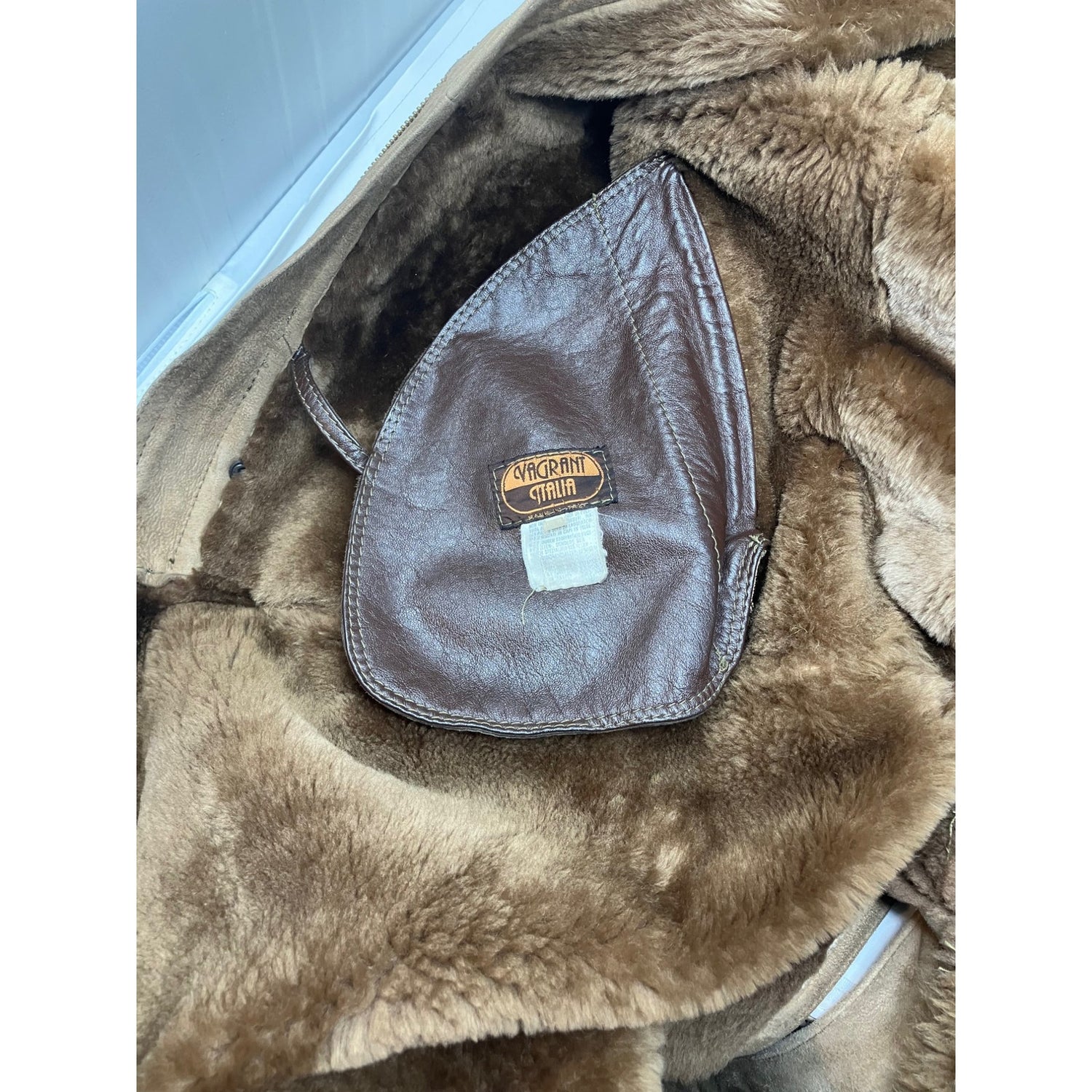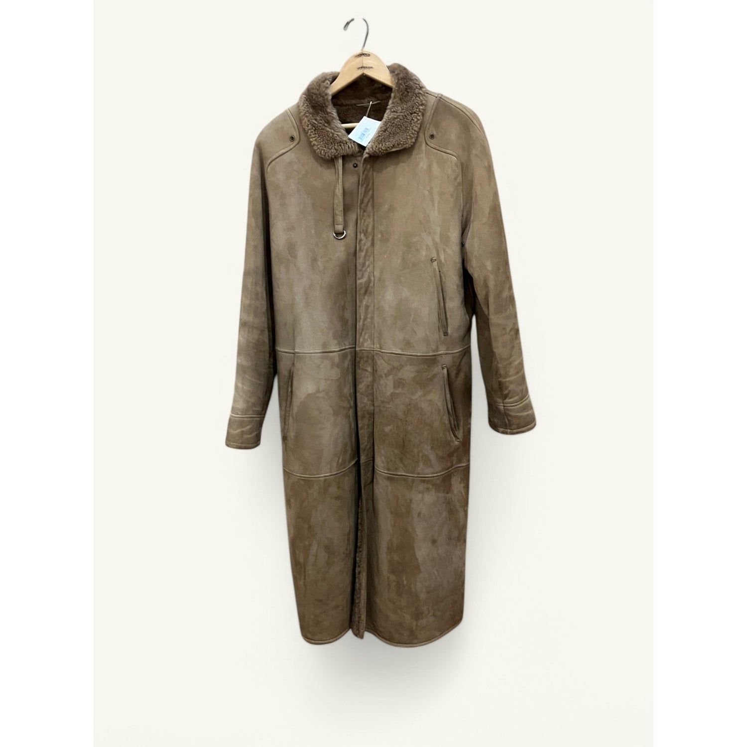 Vintage Vtg Sheepskin Shearling Suede Calf Length Coat Italian Vagrant Italia 56