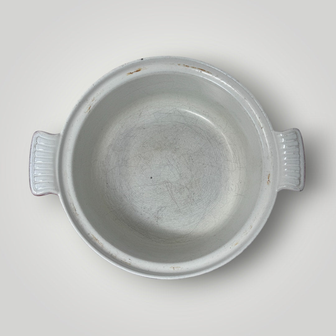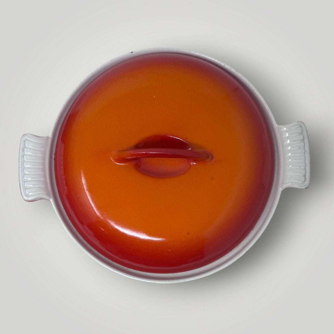 Vtg Descoware Belgium Vintage Enamel Cast Iron Dutch Oven Flame Orange Red 2QT