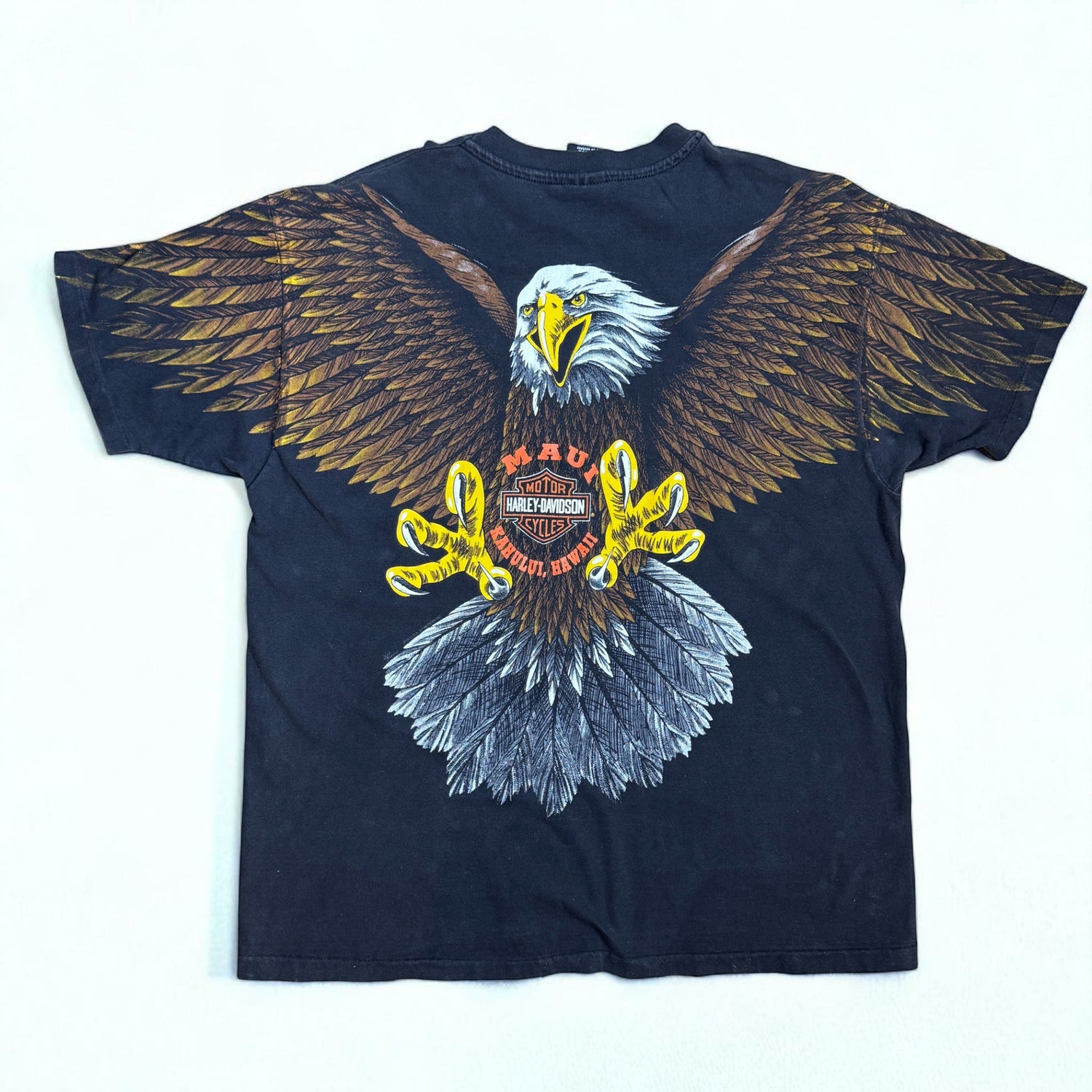 VTG Harley Davidson Screaming Eagle All Over Print T-Shirt XL 1993 USA Made Maui