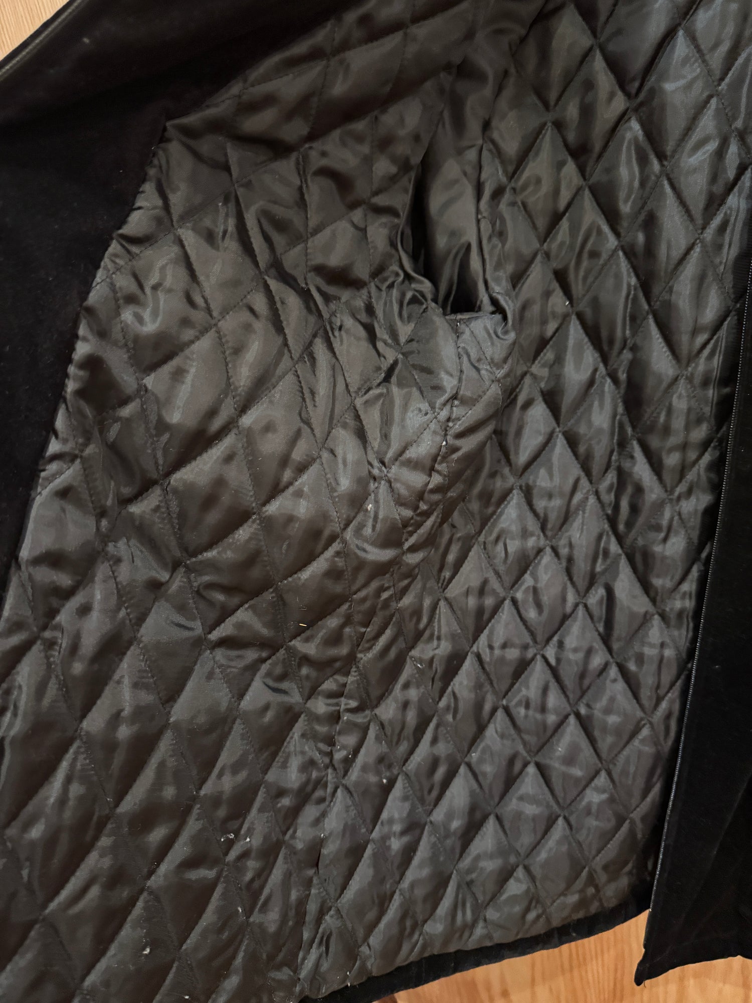 Vtg Gallery Y2k Velvet Coat Black Fur Collar Cuffed Lined Quilted Small